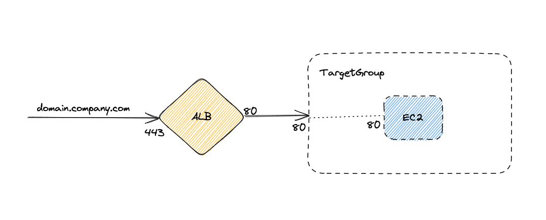 Let's assume that you have a setup in AWS, where a domain todolist.example.com is mapped to an AWS ALB, pointing it to an underlying TargetGroup with one EC2 after checking the host headers as shown in the diagram below.
