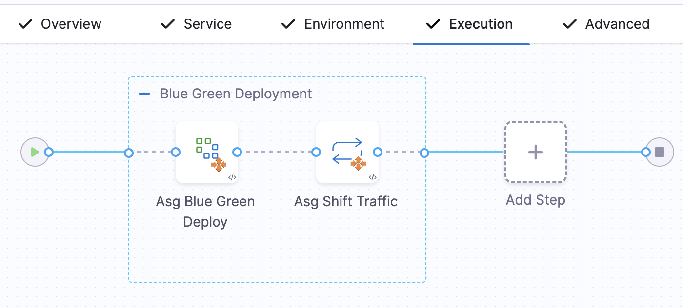 If you don’t select Add Traffic Shifting Steps, you’ll instead see ASG Blue Green Deploy Step and ASG Swap Service in the group.