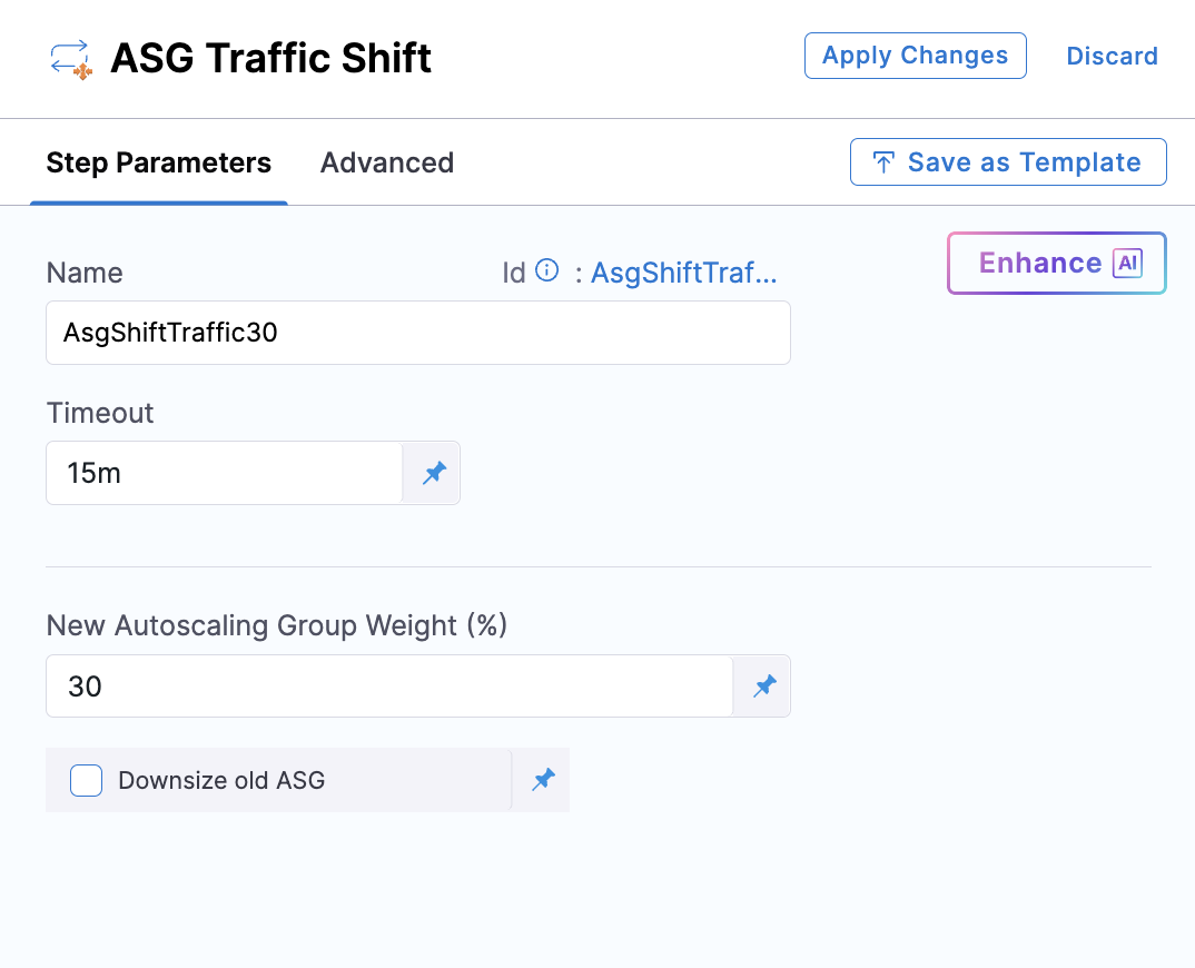 If you do not select Use Shift Traffic, the ASG Traffic Shift step will be omitted from the pipeline.