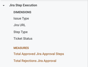 Using fields from Jira Step Execution automatically filters the data to stages that contain Jira steps (Create, Update, Approval).