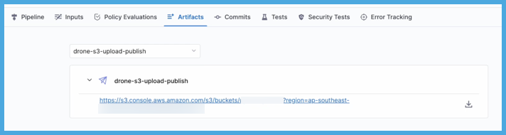 If your pipeline has multiple steps that upload artifacts, use the dropdown menu on the Artifacts tab to switch between lists of artifacts uploaded by different steps.