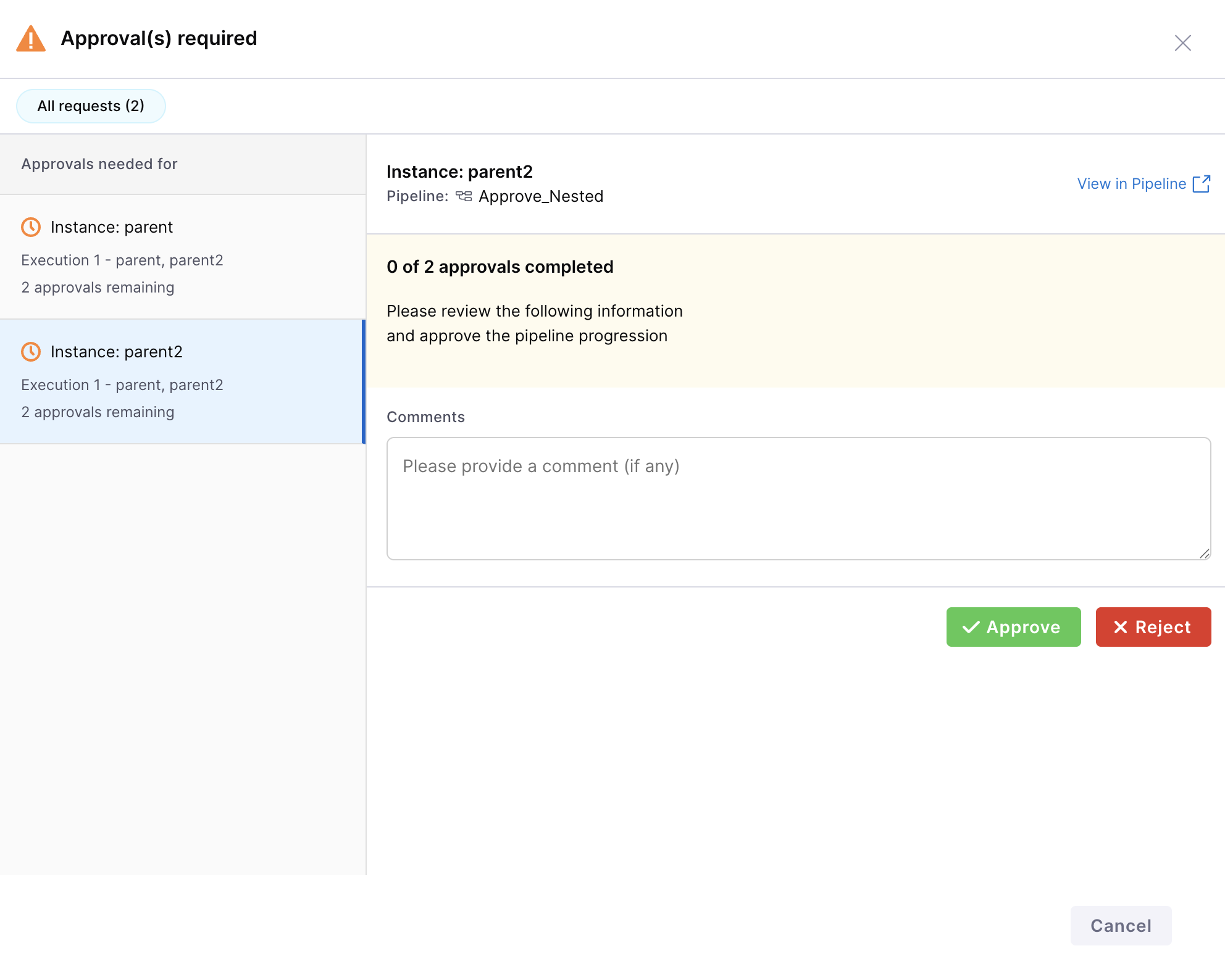 - Approve the pipeline execution for your service instances.