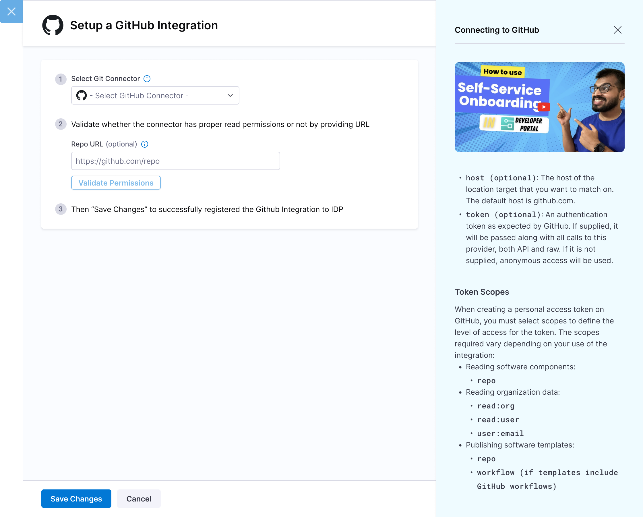 In connector - The account path is https://github.com/user-name. So the repo URL in IDP onboarding flow should be https://github.com/{USER_NAME}/{SOME_REPO}. It cannot be https://github.com/{SOMETHING_ELSE}/{SOME_REPO} - this will not work.